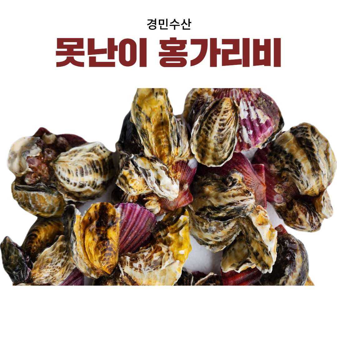 못난이 홍가리비굴 껍질이 많이 붙어 있지만, 가리비 알맹이는 크고 좋습니다!!!일반 홍가리비와 달리 굴 껍질 등 무게가 많이 나갑니다. ※1kg 당 8미 내외구매 시 참고 부탁드립니다.